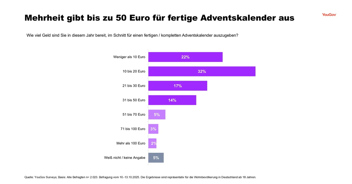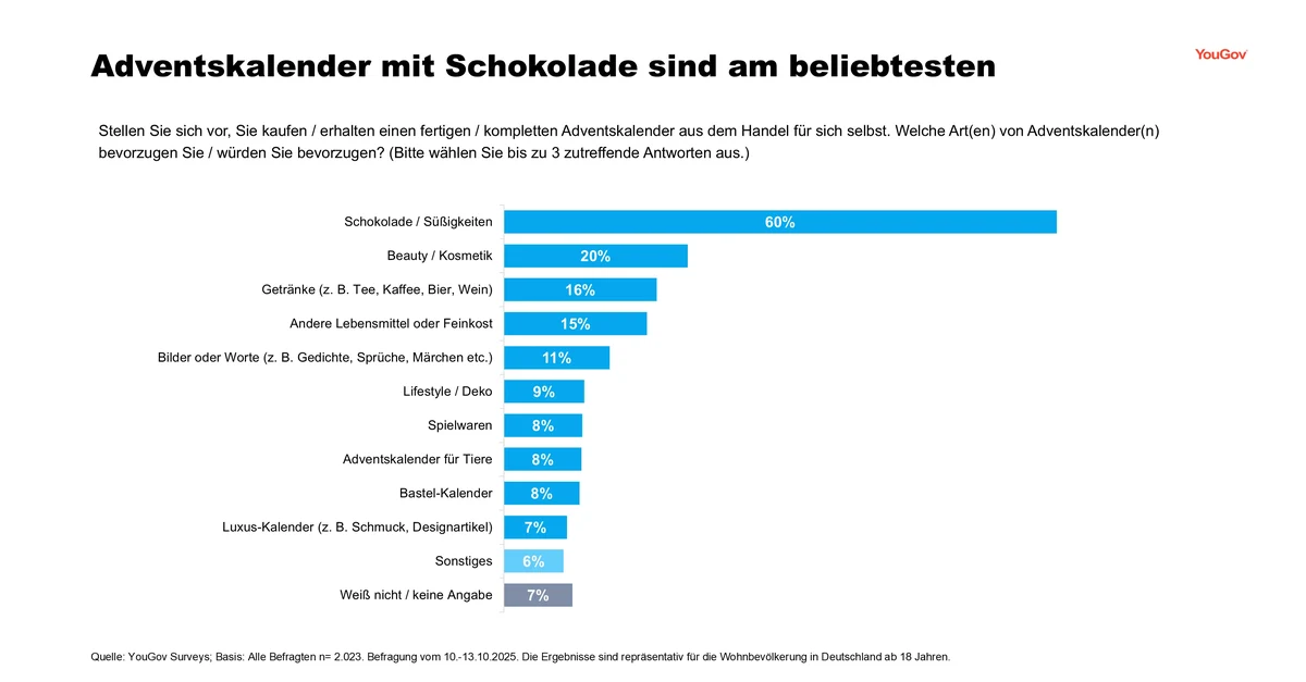 Aktuelle YouGov-Daten zum Kauf von Adventskalendern