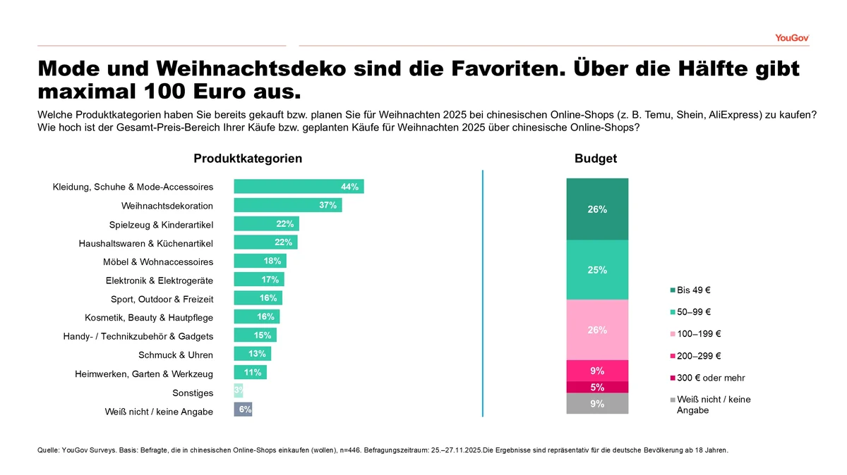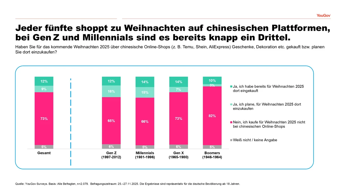Aktuelle YouGov-Umfrage (November 2025) zu Weihnachtsshopping bei chinesischen Online-Shops